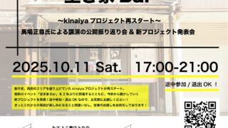 Event 【祝再スタート】2年ぶり復活の空き家Bar 2年ぶりに空き家Barが復活します。初回開催から7年です笑まちの若手が「やりましょう」と声をかけてくださってプロジェクト再起動です。Kinaiyaプロジェクトってどうなってる?と気にかけていただいていた方もいるそうで、有志のみんなで協力し合... 2025.10.10 EventTopics