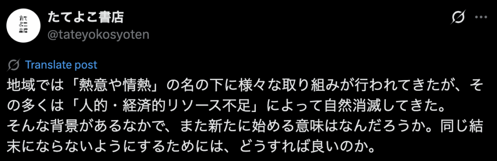 以前、たてよこ書店のXのアカウントでこんなツイートをしました。